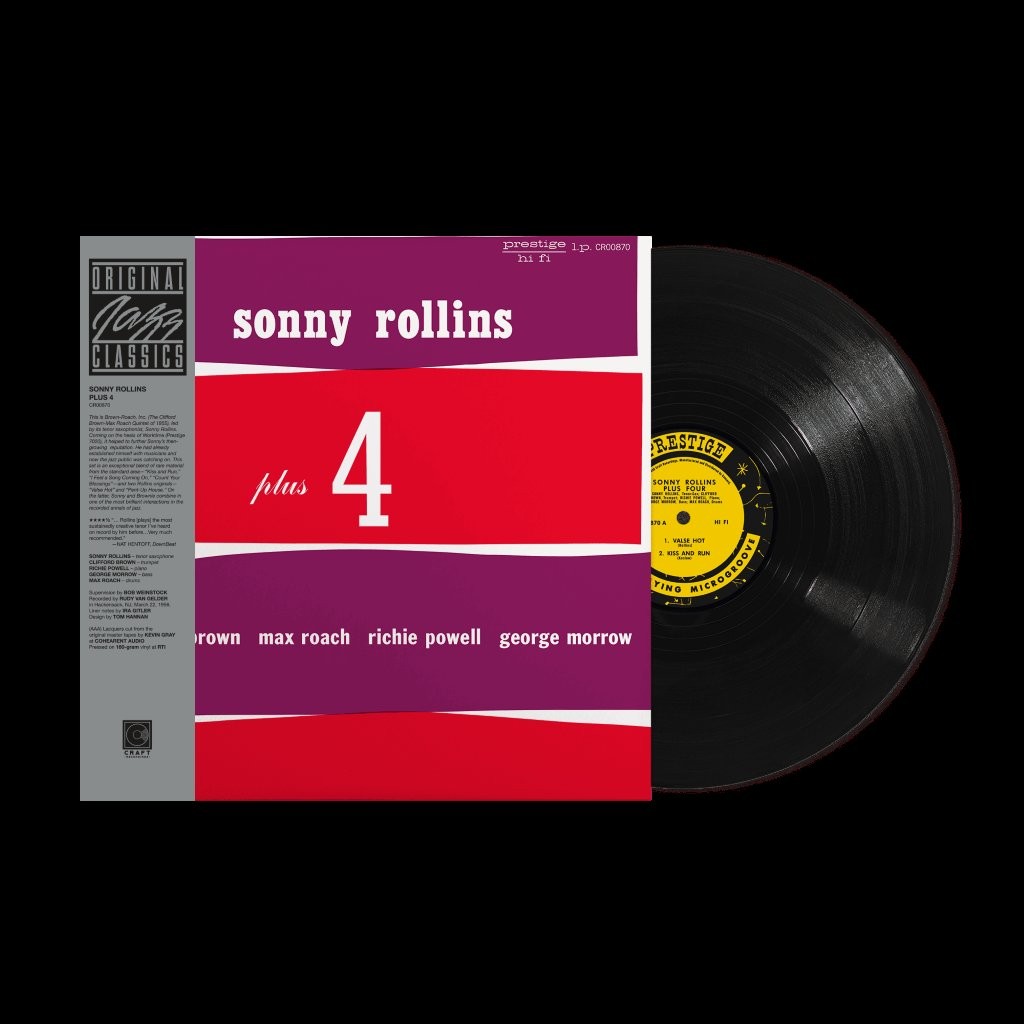 Plus 4 was originally released on Prestige in 1956 and features Sonny Rollins playing with the Cliff Brown/Max Roach Quintet. Described as a particularly strong hard bop set, the album contains 5 cuts, including 2 Rollins originals “Pent-Up House” and one of his best known pieces, “Valse Hot”.